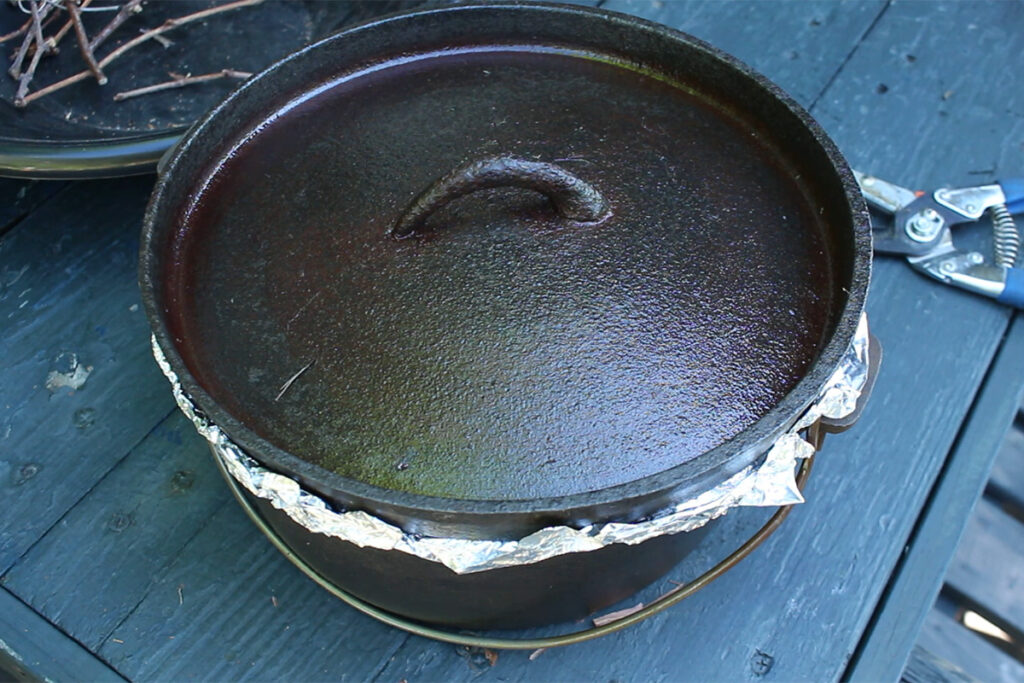 しかし枝の量が多かったので、私はダッチオーブンに入れてその周りでたき火をするという方法で炭焼した。ダッチオーブンに詰めるだけ枝を詰めて、3時間くらい薪を焼いた。この方法はやたらと燃料を食うので、廃材の薪などがたくさんある場合に有効であろうと思う。
